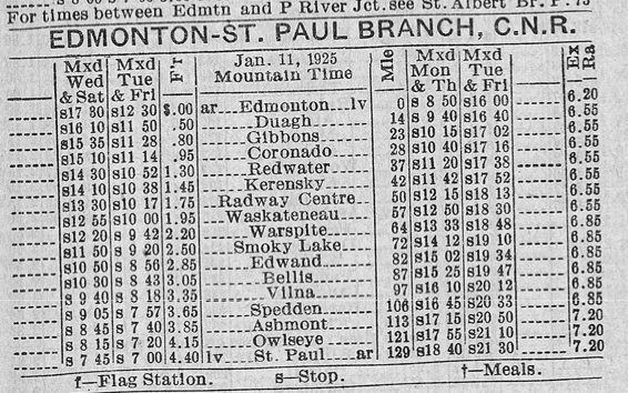 Figure 2: Passenger Rail schedule from Edmonton to St. Paul, 1925